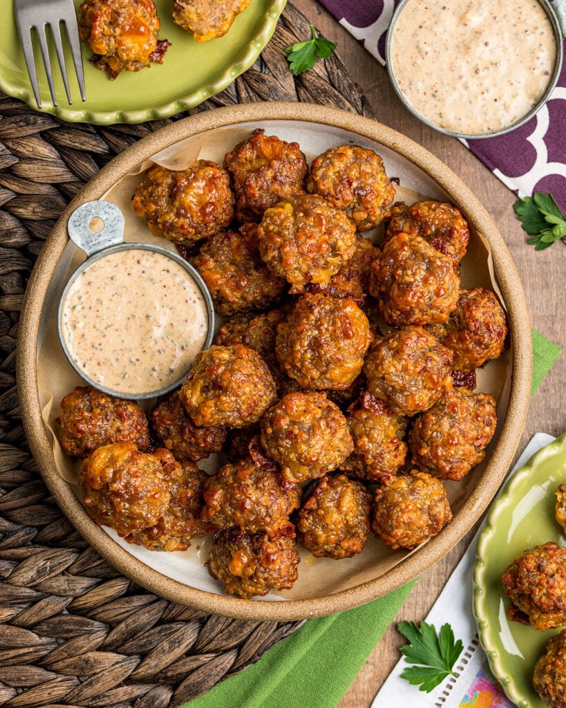 Everybody loves sausage balls. And why not? They are the perfect meaty, cheesy party bite! With their crispy golden outsides and tender insides, no appetizer spread is quite complete without them! There’s nothing better for weekend get-togethers, tailgates, Super Bowl parties and holiday gatherings.