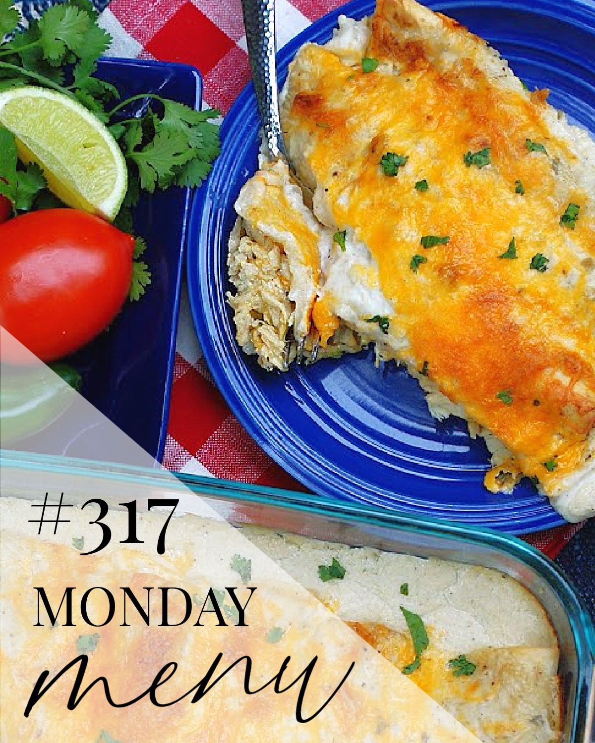 Going out is overrated when you’ve got great recipes like Tex Mex Sour Cream Chicken Enchiladas and Crock Pot BBQ Boneless Chicken Thighs on your meal plan! Check out this week’s Monday Menu meal ideas to see how we’re getting this + breakfast, dessert and a fun snack on the table!